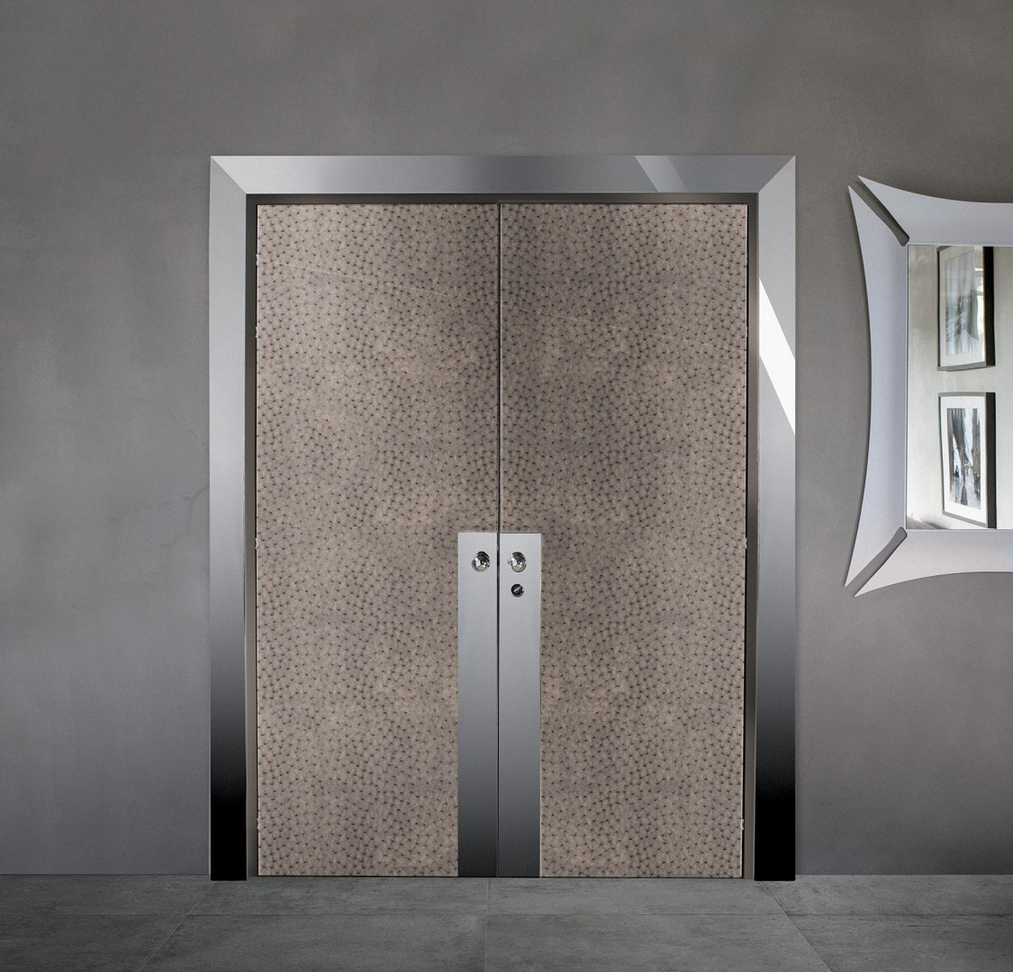 Lacquered grey door with double vertical bugna