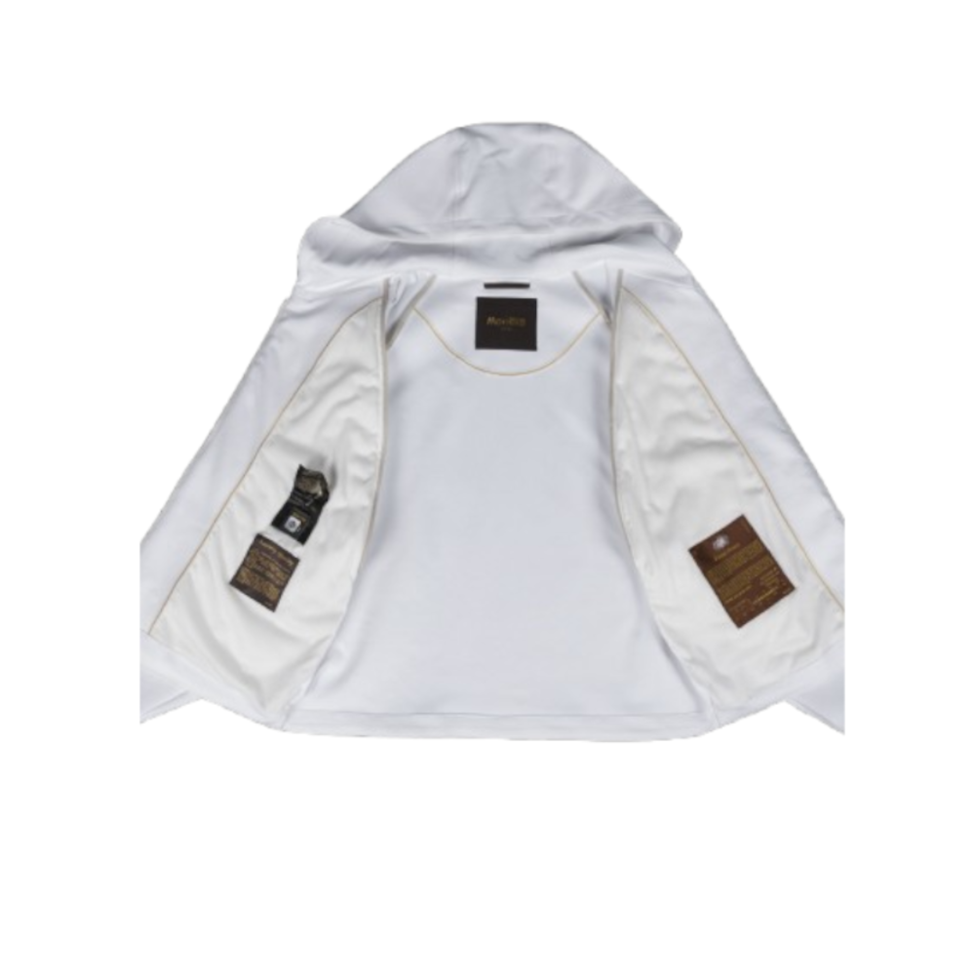 Ampio cappuccio fisso, rifinito con bordature