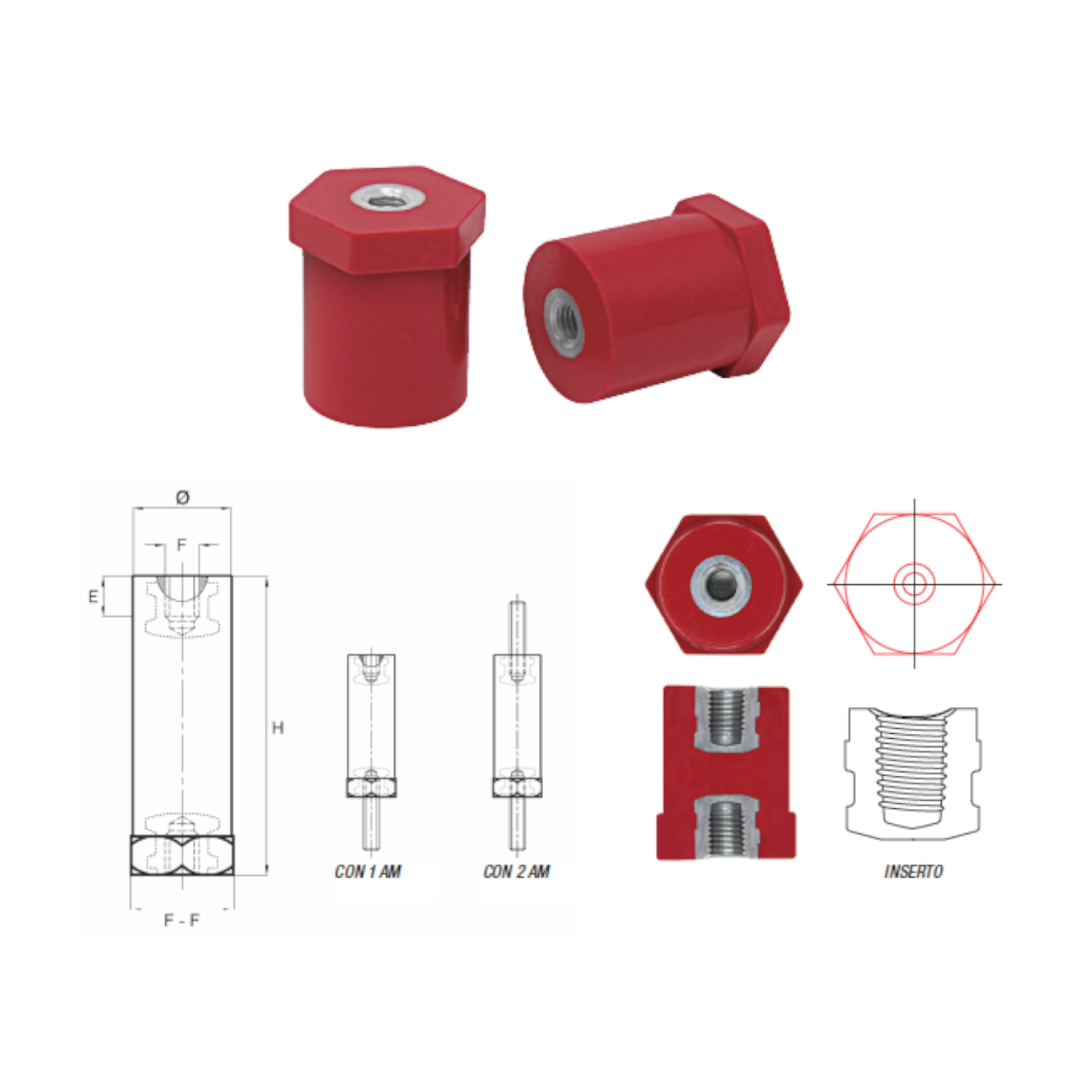Isolatori per bassa tensione prodotti tramite stampaggio a compressione e realizzati solo in massa poliestere rinforzata con fibra di vetro BMC RF 3/20 certificata UL e classificata HL2 secondo la EN 45545-2.
