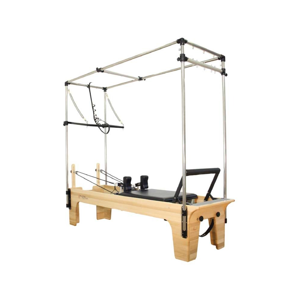 Costruita con la stessa struttura in faggio lamellare dei nostri Reformer, permette di eseguire una vasta gamma di esercizi abbinando la molteplicità di applicazioni dinamiche del Reformer a quelle isometriche e post riabilitative della Cadillac.