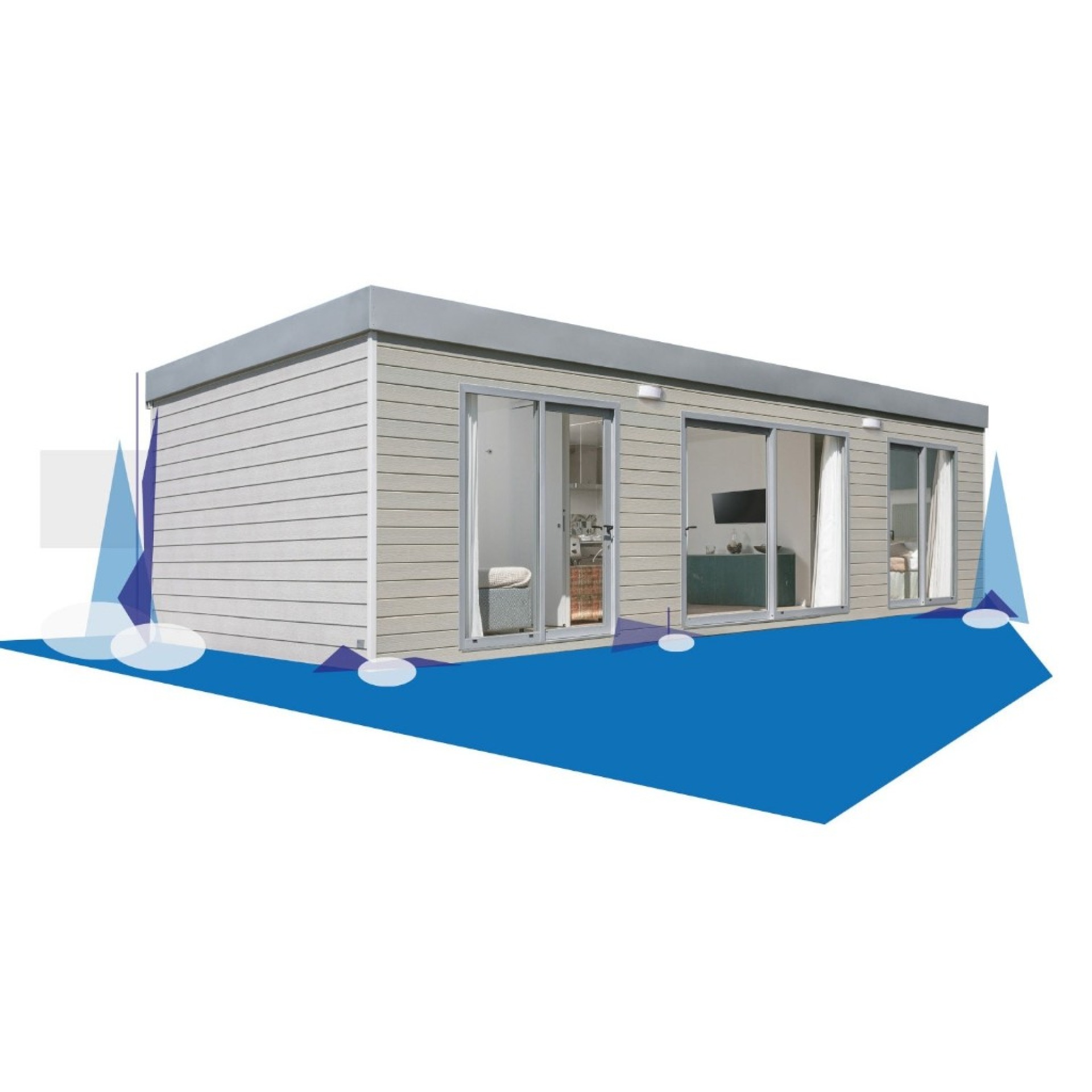 - Rivestimento esterno in PVC rigido doga con possibilità di combinazioni con altri materiali
