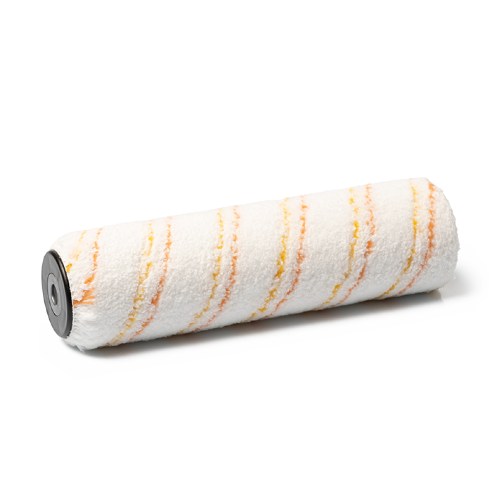 Rullo a pelo basso in microfibra ad alta densità: superiore capacità di assorbimento e potere coprente. Il fiocco aperto in punta permette un rilascio fluido del colore, la microfibra in poliestere fine ed elastica offre una rullata consistente e uniforme. Tessuto a filo continuo per una finitura extra-liscia senza gocce e senza pelucchi.