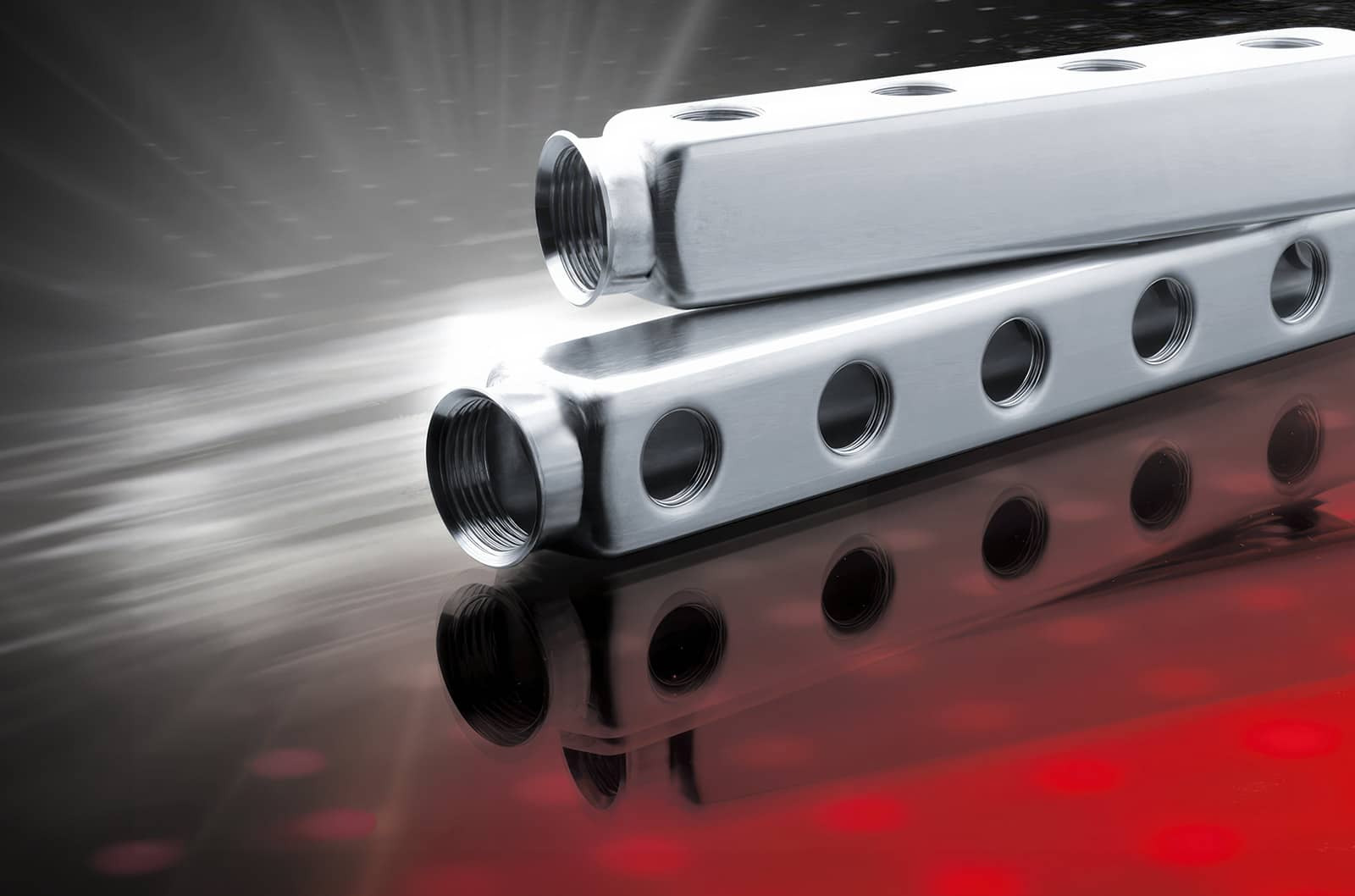 Stainless steel fittings for flexible pipes and press fittings, stainless steel electrical conduits, stainless steel distribution manifolds for the thermohydraulic sector.